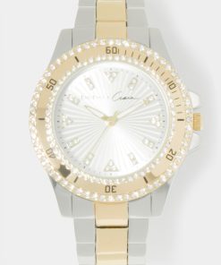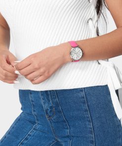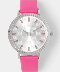 Bebe Women’s Baby Pink Strap And Rosegold Metal Chain Link Bracelet Watch | Baby Pink & Rosegold