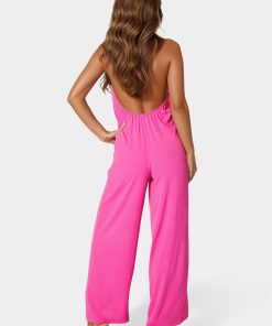 Elevate your eveningwear with this halter jumpsuit featuring wide-leg airflow fabric. Perfect for rooftop cocktails or contemporary celebrations.
