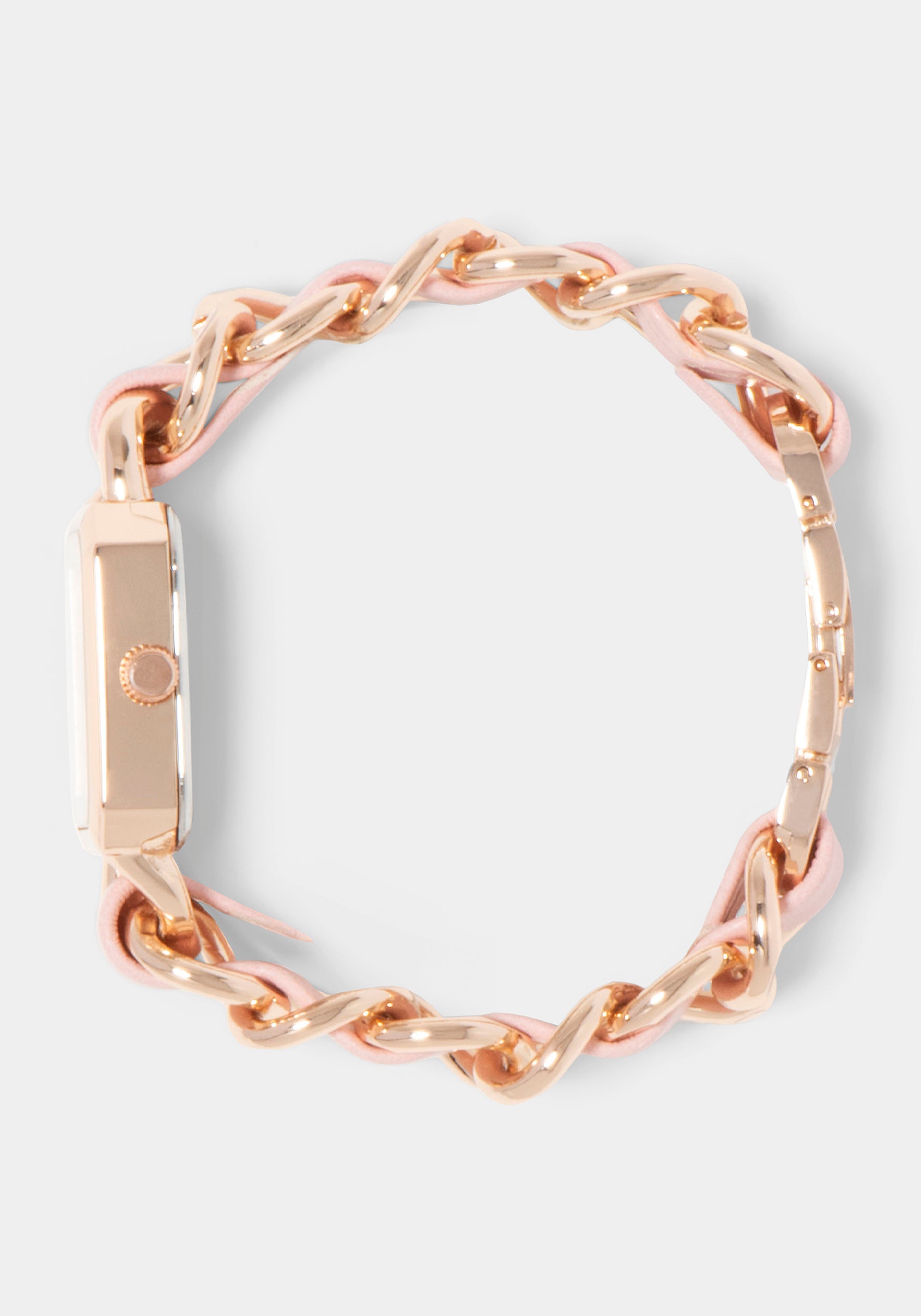 A blend of blush tones and metallic warmth, this watch is a masterpiece of delicate luxury.