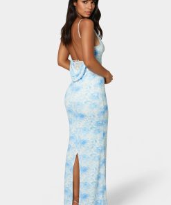 Sultry meets romantic in this backless maxi featuring delicate lace insets. Perfect for intimate dinners or enchanting celebrations, it’s designed to make an impression from every angle.