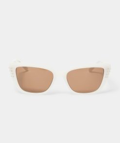 Serving Ciara’s signature style, this uplifting silhouette is sculpted in milky white handmade acetate accented with rose-gold gemstone crystals.Size: Eye Size 55mm. Bridge Width 17mm. Temple/Arm Length 135mmCare Instructions: Use lens spray or a mild liquid soap/water and wipe with a clean, soft, absorbent cloth.