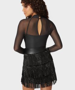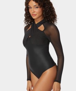 Redefine seduction with the Coated Knit Combo Mesh Halter Neck Bodysuit, where bold and contemporary meet. The halter neckline promises a beguiling bareback moment, while the fusion of coated knit and sheer mesh ignites a fire of visual intrigue. Wear it, and become the epitome of the modern temptress.