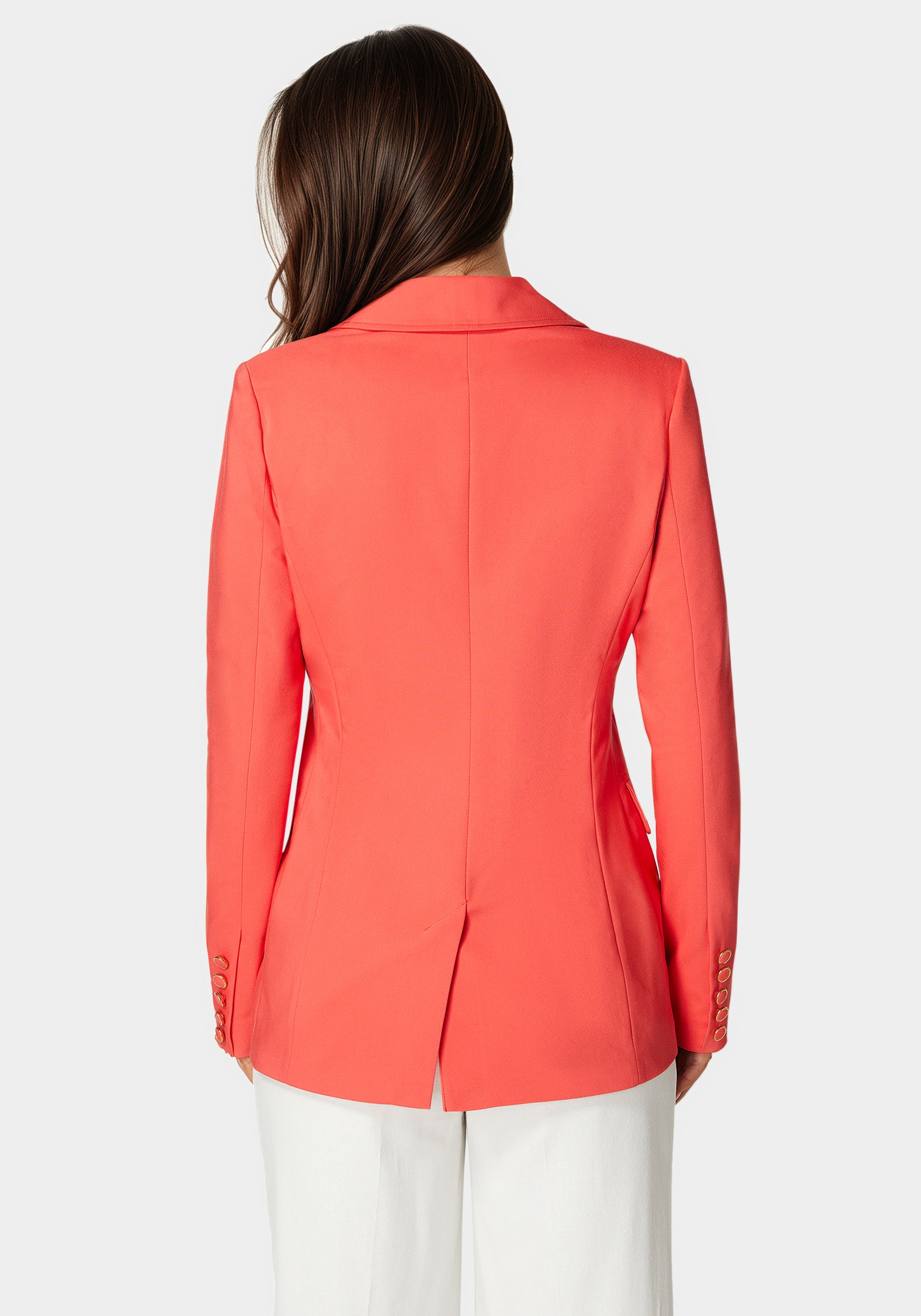 Command attention with our Double-Breasted Strong Shoulder Jacket. This bold and sultry jacket features a double-breasted design and strong shoulder detailing for a powerful and confident look. The structured silhouette and luxurious fabric exude sophistication and elegance. Whether paired with a skirt or pants, this jacket is an essential addition to your wardrobe.