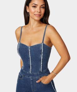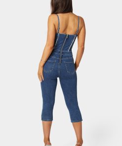 Show off your curves with the fitted Capri denim jumpsuit. Perfect for a casual night out or daytime errands, its sleek design and Capri length offer a flattering and versatile fit.