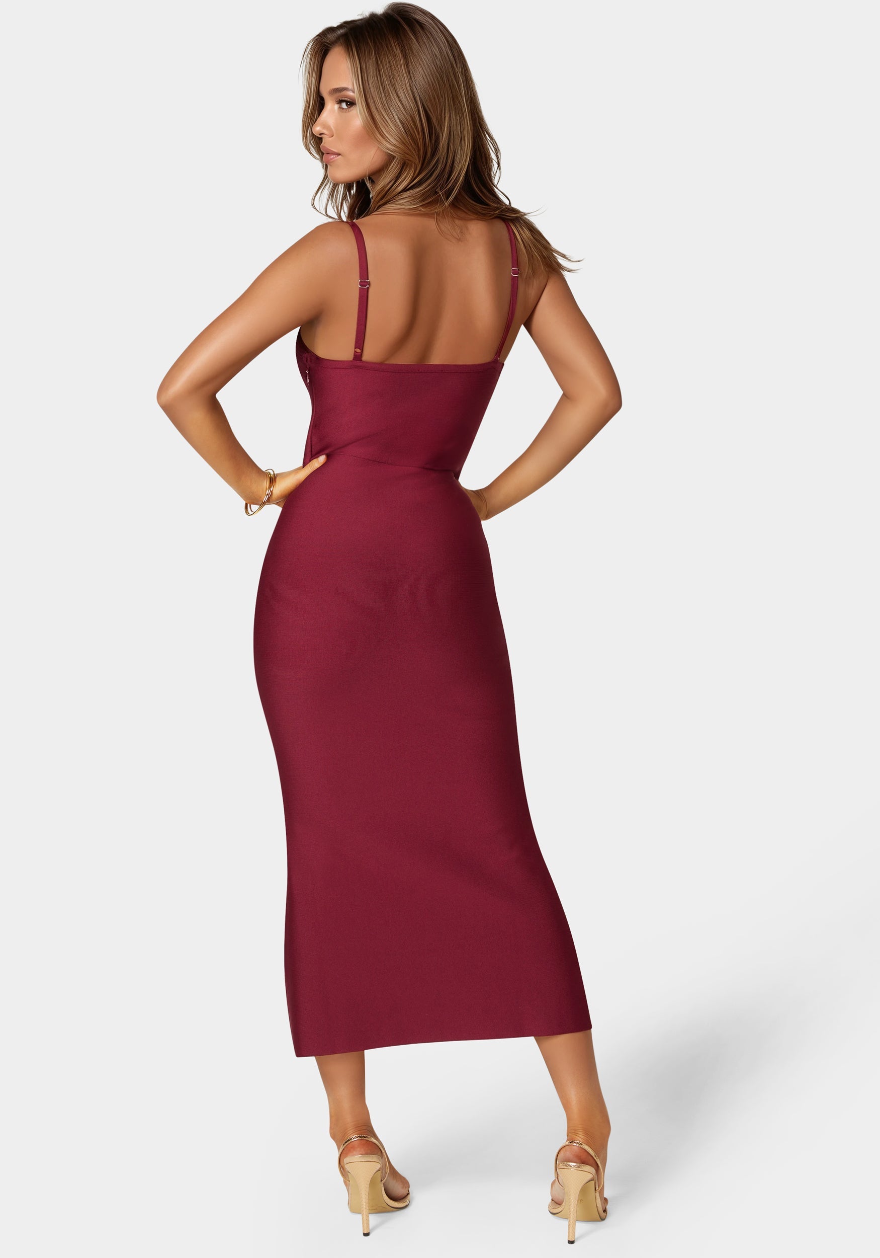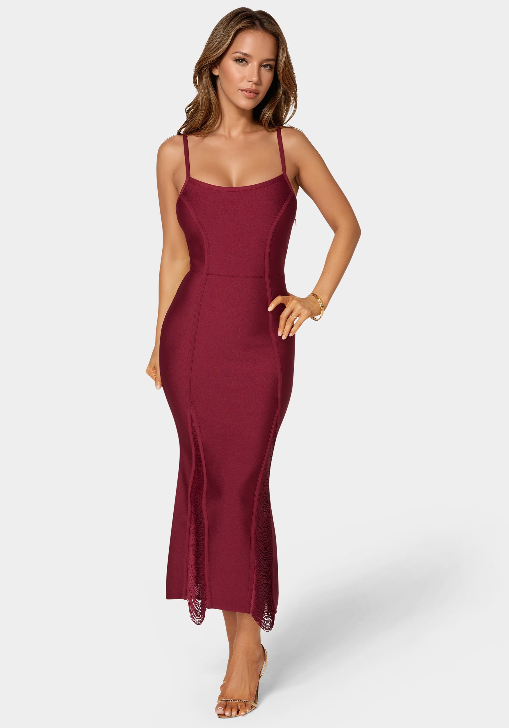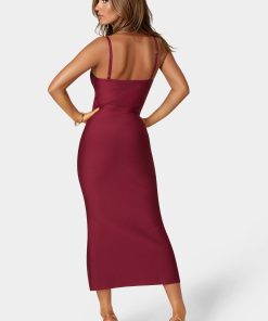 Bebe Women’s Fringed Bandage Midi Dress | Burgundy
