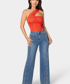 Make a statement with high waist snap detail wide leg jeans. Ideal for casual Fridays or weekend getaways, their unique snap design and flattering cut bring a modern twist to classic denim.