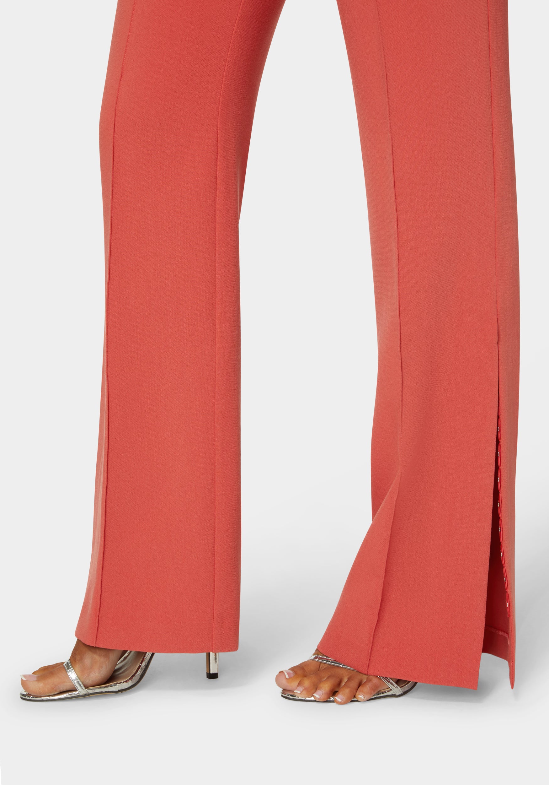 A staple for wardrobe versatility, these straight-leg pants with a high waist offer a sleek silhouette, enhanced by the discreet side pocket and invisible zipper. Ideal for both office and casual chic environments, they provide a comfortable, tailored fit.