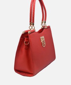 The perfect shopping companion is a stylish bag. This shopper bag features braided rope top handles, a detachable crossbody strap, and charm logo plate detail.