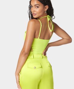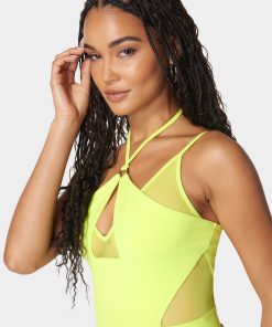 Introducing the ultimate statement piece – our mesh combo strappy halter bodysuit. Engineered for the bold and the beautiful, it blends sleek mesh panels with a seductive halter neckline.
