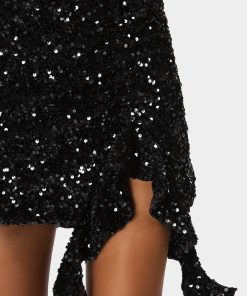Dazzle from sunset to sunrise with our sequin ruffle slit skort that combines the thrill of a mini with the freedom of shorts. Strut your stuff with this playful yet practical wardrobe win.