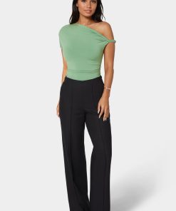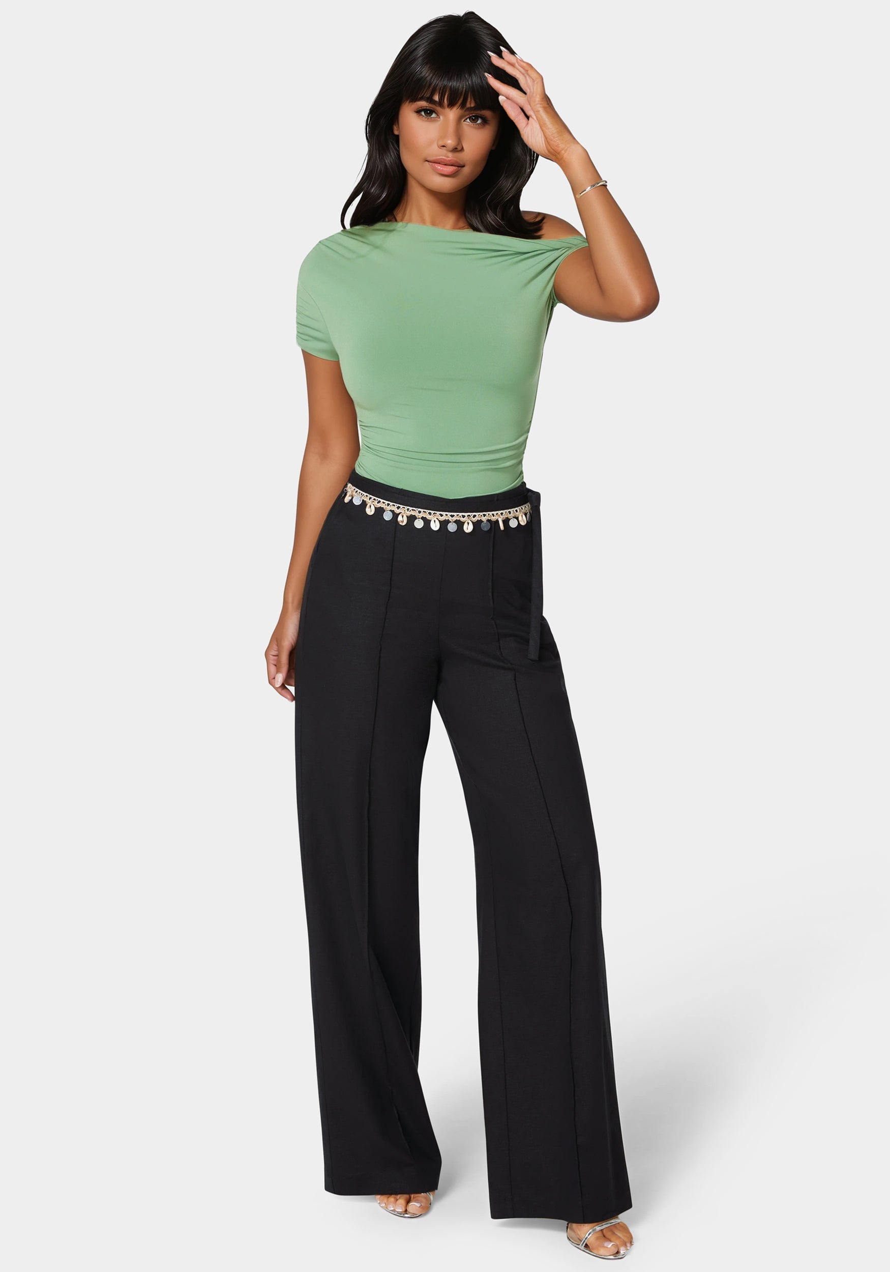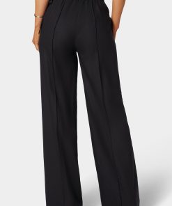 Bebe Women’s Natural Waist Linen Straight Leg Pant | Black