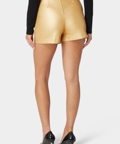 Define audacity with the Natural Waist Metallic Vegan Leather Skirt. This piece challenges the ordinary, blending the daring edge of metallic vegan leather with the playful charm of a skort. Crafted to accentuate your natural waist, it’s a bold statement of both style and substance. For the brave, for the bold, for those who pave their paths in gleaming steps—this skirt is your anthem.