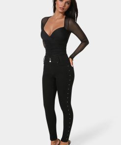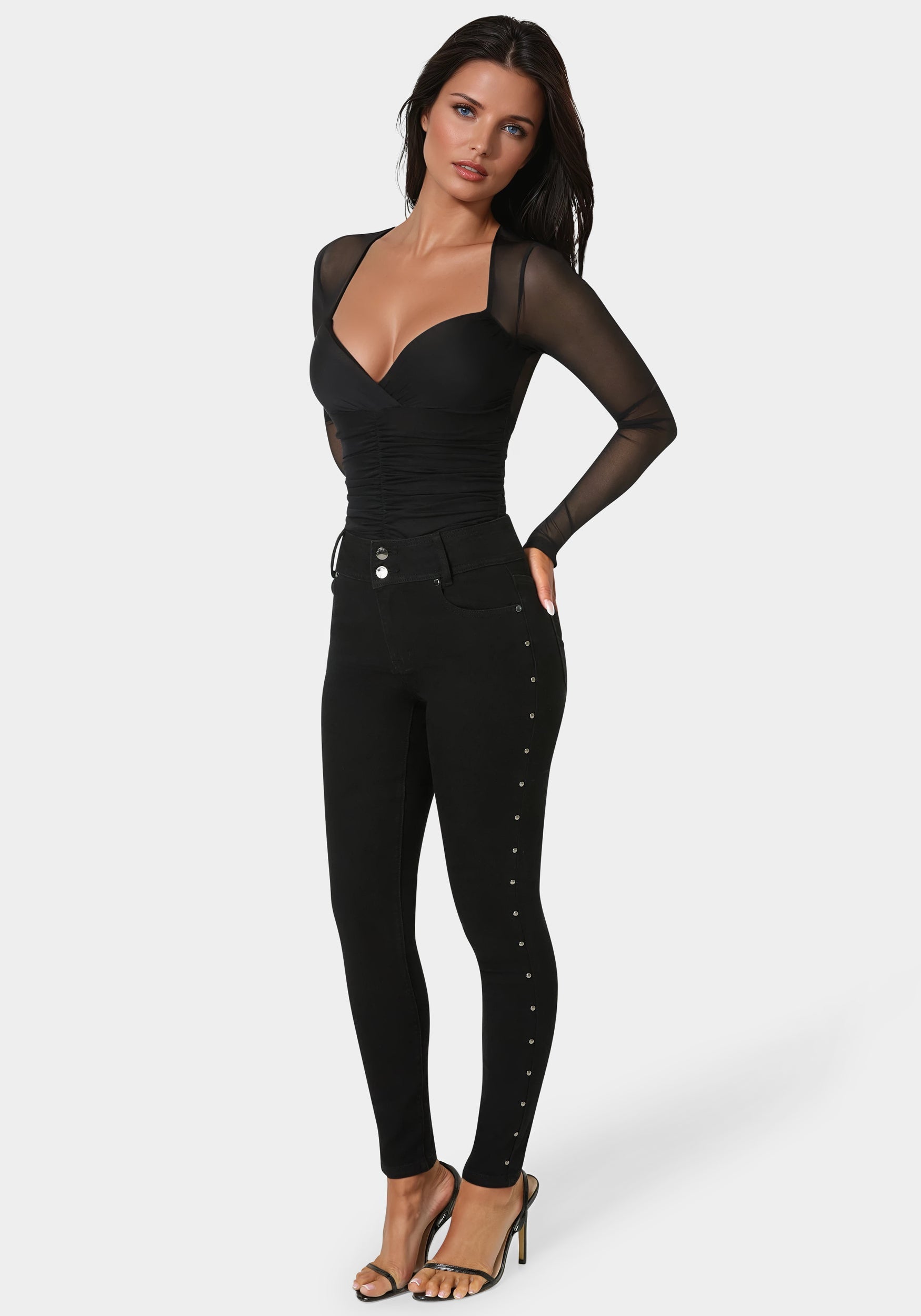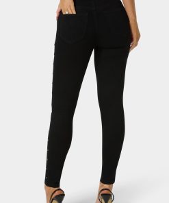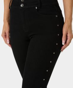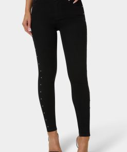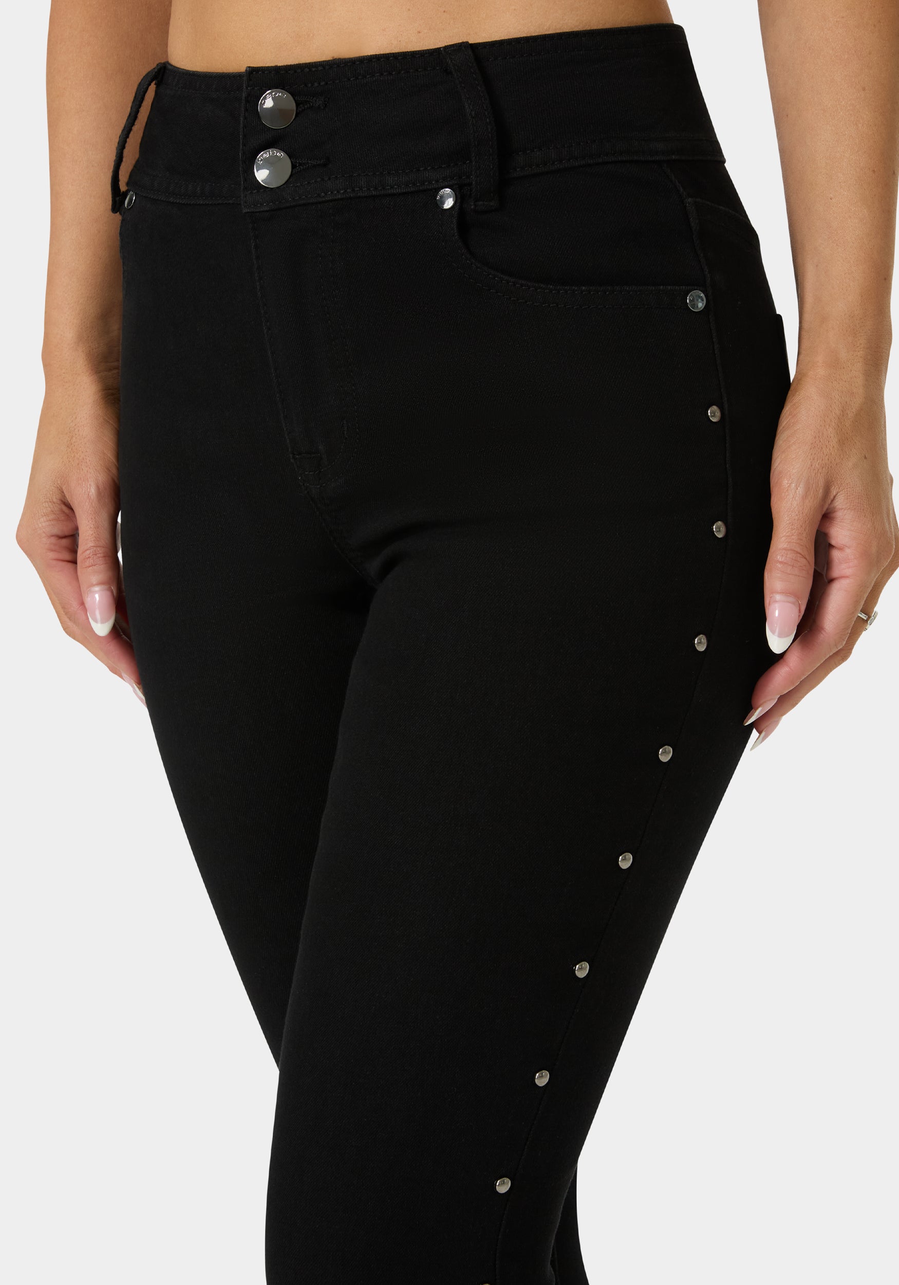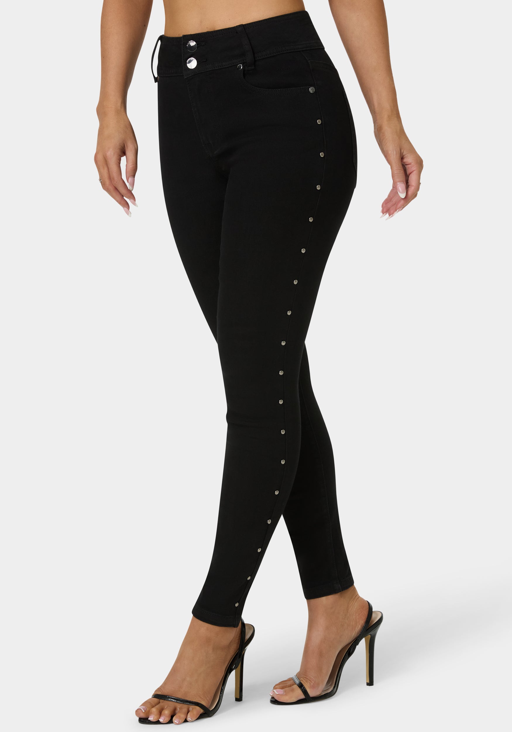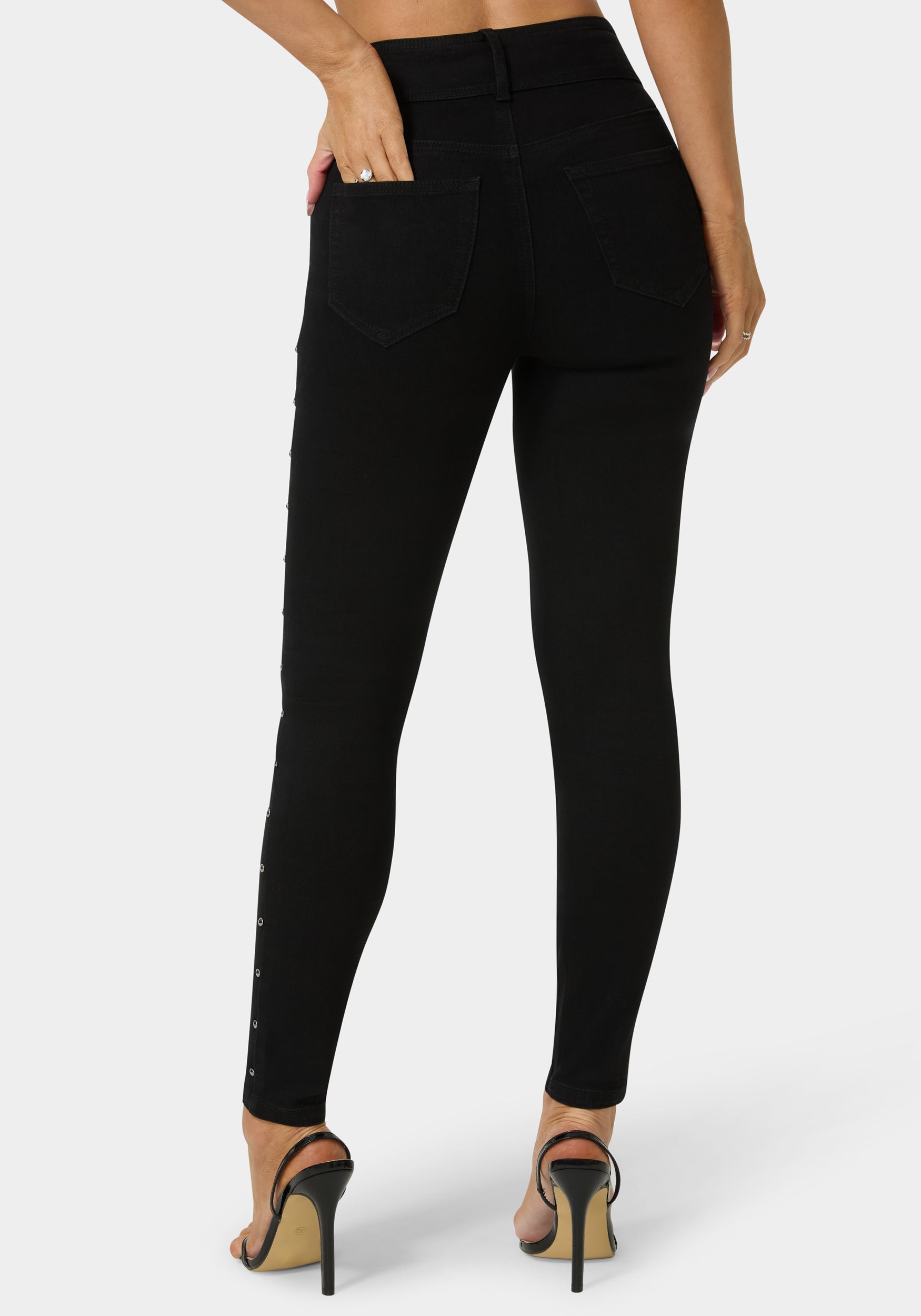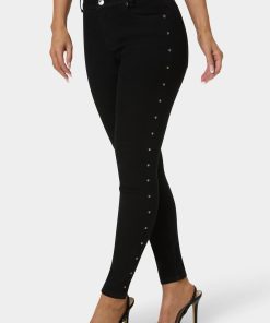 Studded details add a unique edge to these skinny jeans; perfect for jazzing up casual ensembles.