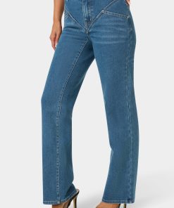A natural waist and V-cut define these straight-leg jeans, offering versatile style for any occasion.