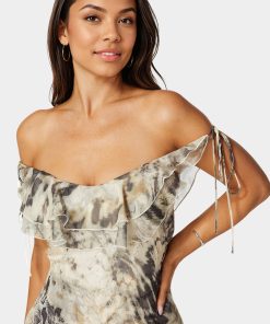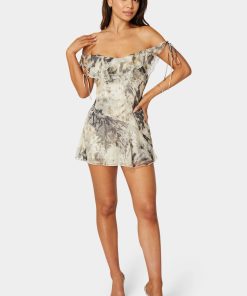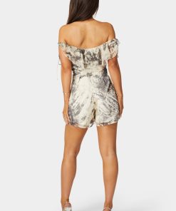 Step into summer with the off-shoulder flowy romper, perfect for sunset cocktails or an afternoon by the pool. This romantic piece highlights your shoulders and flows beautifully with your every move.