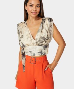Bebe Women’s Off Shoulder Knit Top | Jungle Bloom Print
