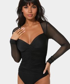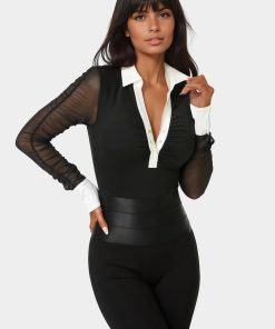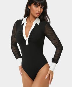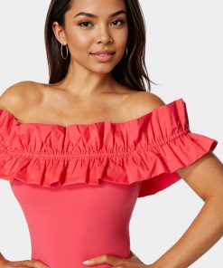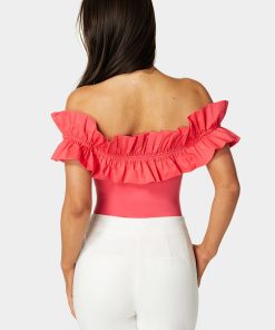 Showcase your flirty side with our Off-Shoulder Poplin Ruffle Knit Bodysuit. The off-shoulder style adds allure, while the ruffle detailing brings a touch of femininity. With a snug knit fabric that hugs your curves, you’ll radiate confidence and captivate hearts wherever you go.