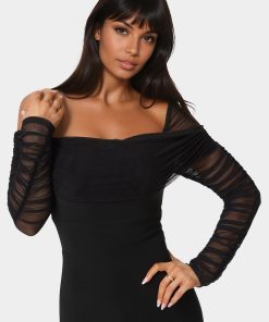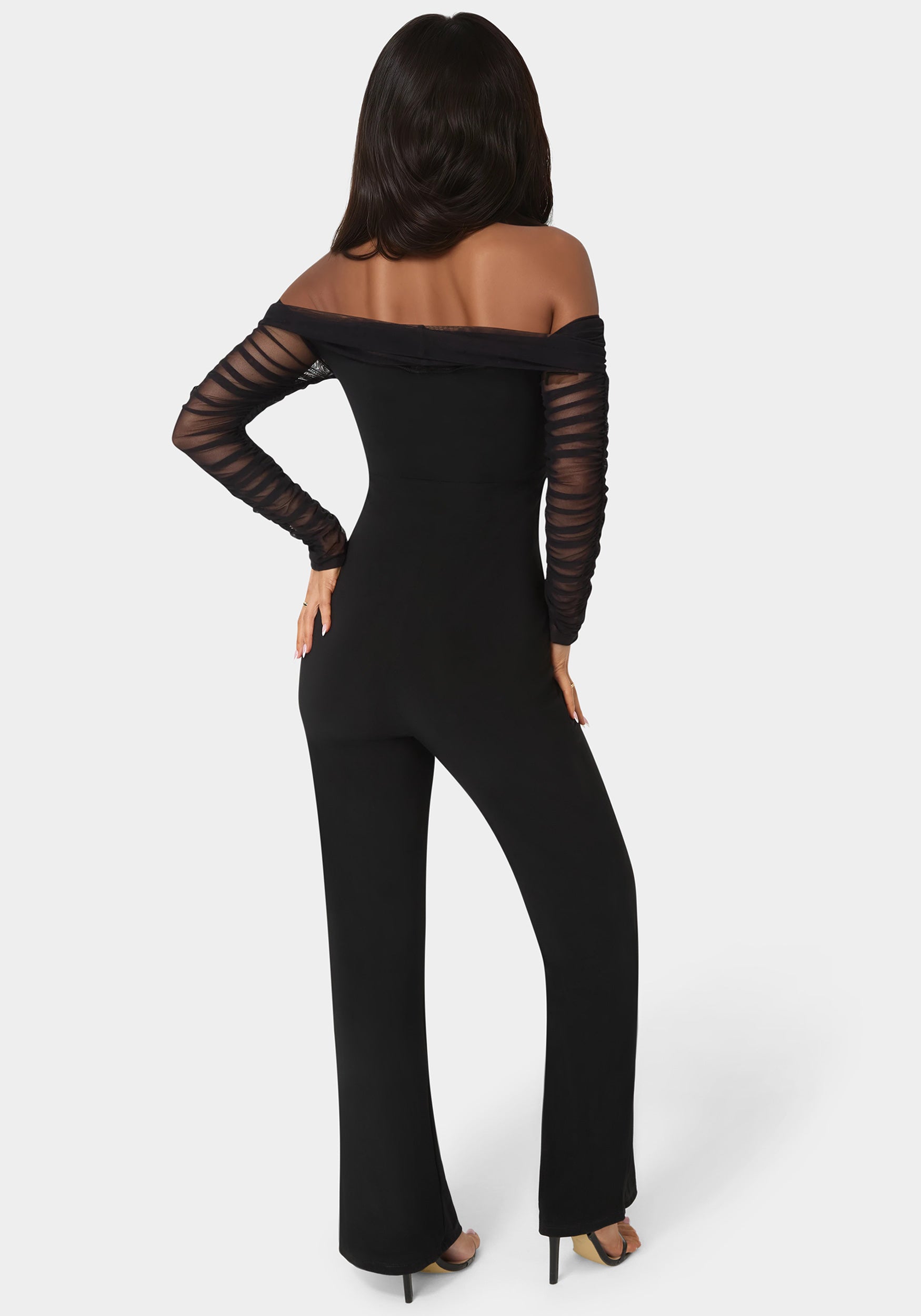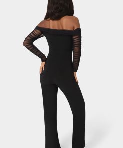 Bebe Women’s Off Shoulder Ruched Jumpsuit | Black