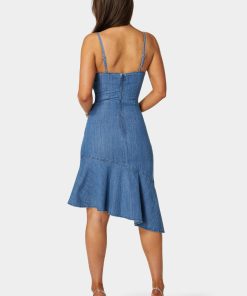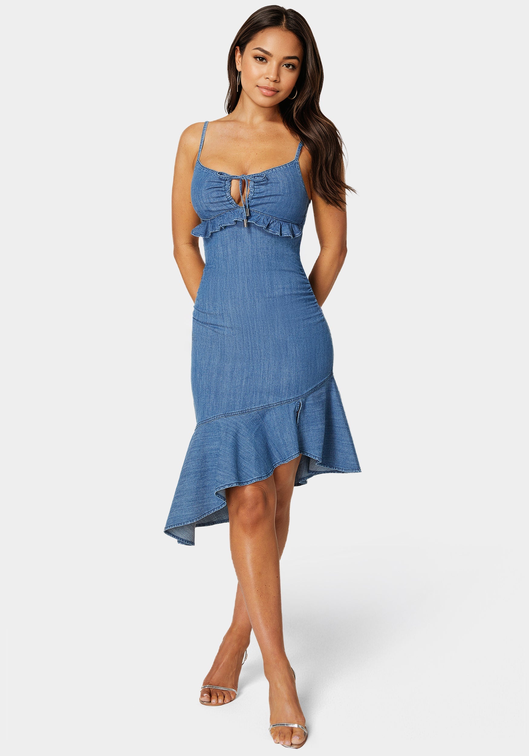 Embrace a casual yet stylish look with this ruffle hem lightweight denim dress. Ideal for weekend outings or a relaxed coffee date, its playful ruffle detail adds a touch of fun to your denim collection.