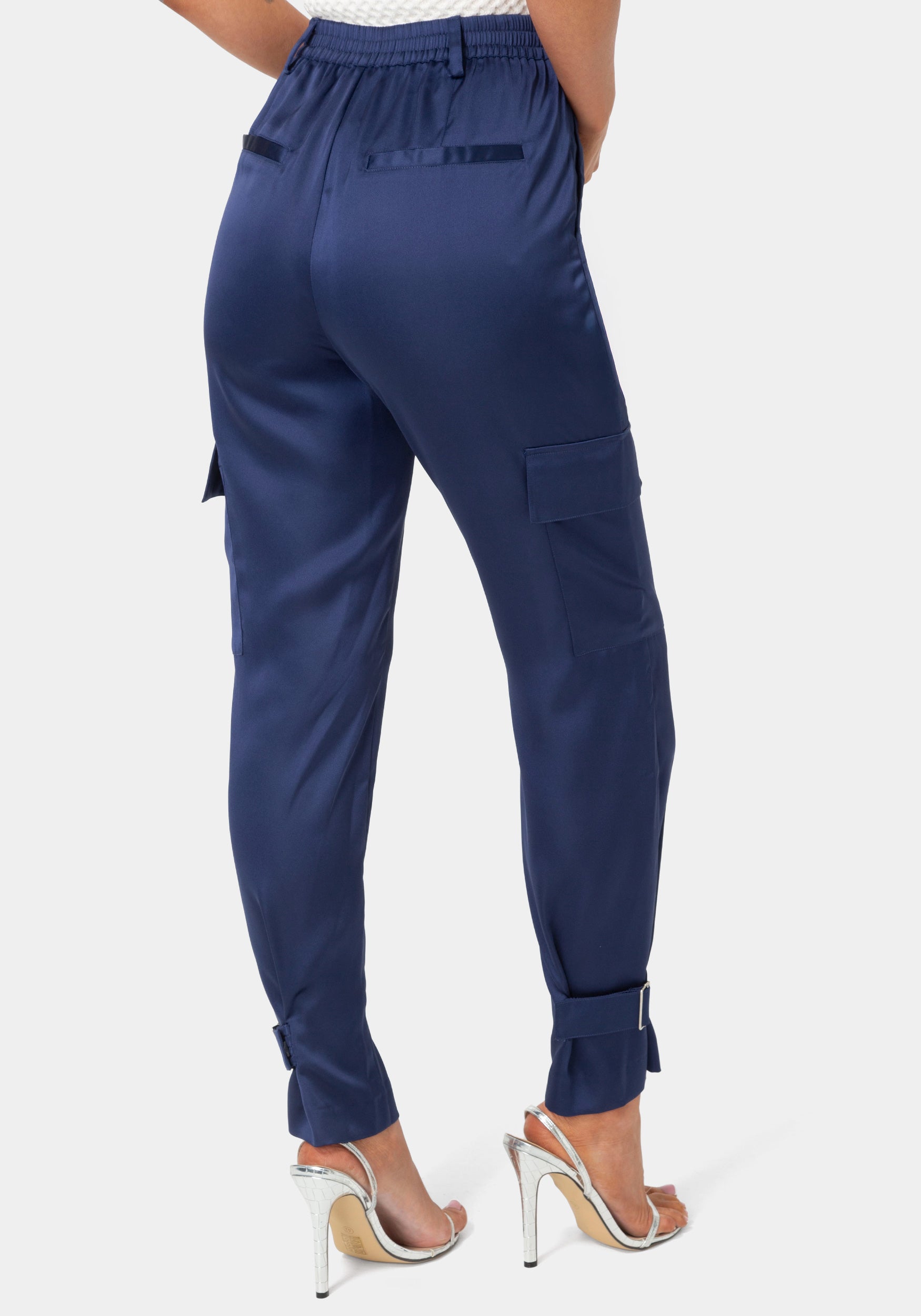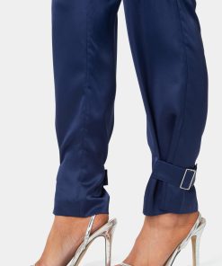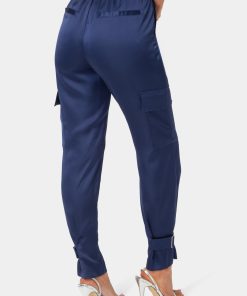 Bebe Women’s Satin Cargo Jogger | Blue Depths