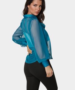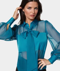 Tailored yet playful, this chiffon and satin blouse with removable bow adds sophistication to business looks or effortless glam for casual dinners. Button-down versatility makes it timeless.