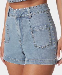 Bebe Women’s Studded Detail Denim Shorts | Light Blue Wash