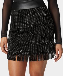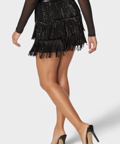 Enter the scene with the audacious charm of the Suede Fringe Combo Vegan Leather Studded Skirt. The flirtation of fringe complements the tough-luxe edge of studs, creating a skirt that swings to the rhythm of your fierce resolve. Make a statement that echoes with every step, in a skirt that speaks to the brave and the beautiful.