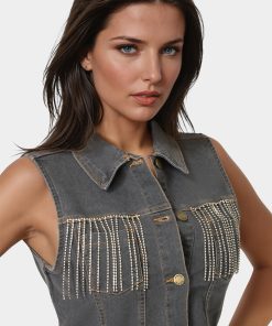 Add instant drama with this cropped vest featuring rhinestone fringe. Perfect for concerts, nights out, or when you’re craving a bold statement piece.