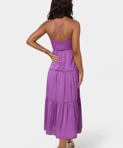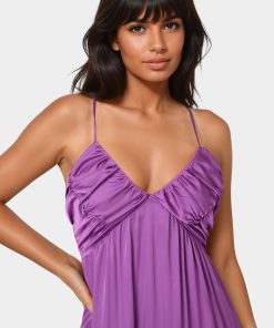 Elevate your look effortlessly from day to night. With its vibrant violet hue and flowing silhouette, this dress is a timeless staple that transitions beautifully from casual outings to evening plans.