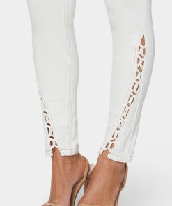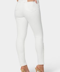 Experience a sleek, modern silhouette. These crisp, white jeans hug your curves and highlight your waistline.