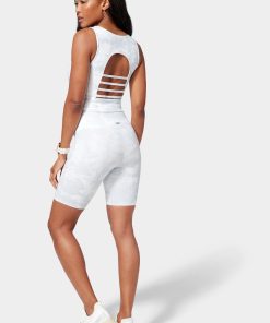 Women’s Bebe Logo Biker Short With Mesh Detail | Marble Mesh Print